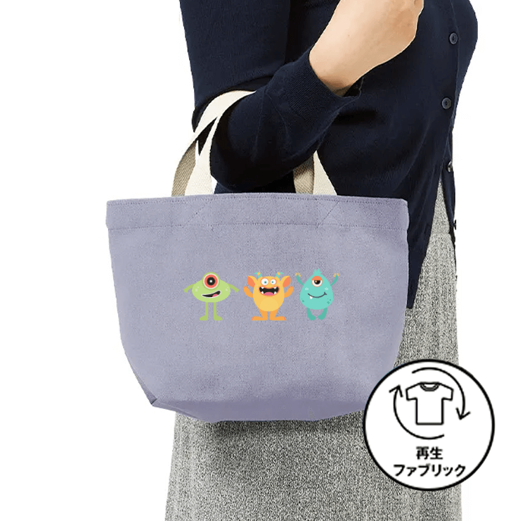 全1色 廃棄予定の裁断くずや生地を回収し、水や染料、化学薬品を使用せず新しい糸を生み出し作られたバッグ、二酸化炭素の排出削減にも貢献しているエコ素材のバッグです。 DTFプリント